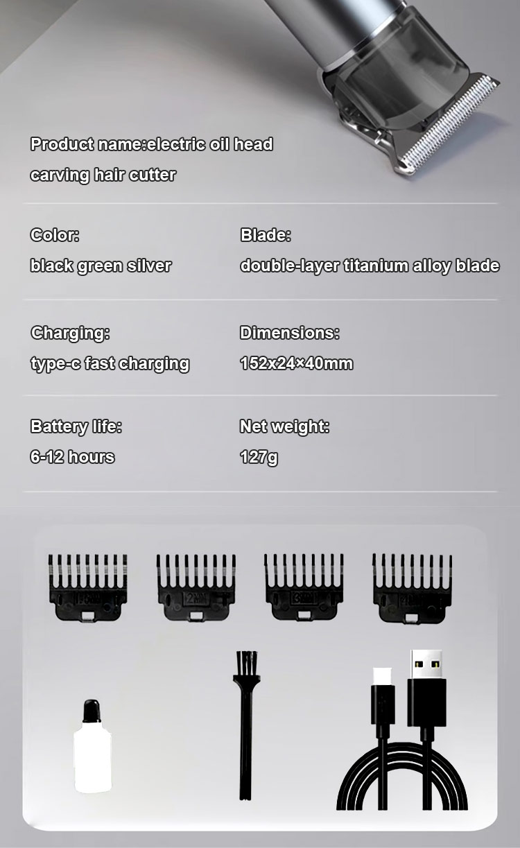 Silent and no-stuck hair Electric oil-cut carving hair clipper