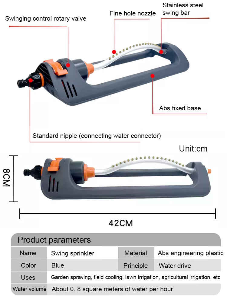 [180° automatic swing] 19-hole garden irrigation sprinkler