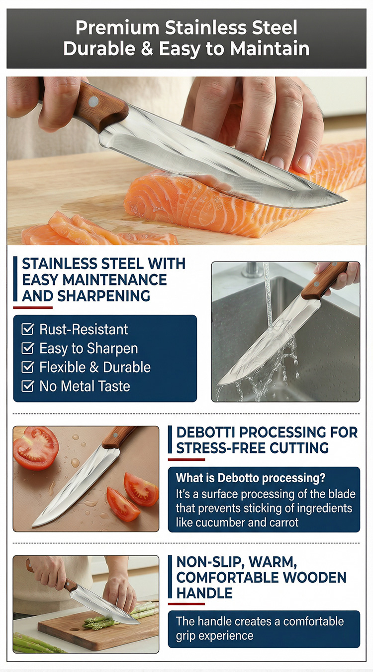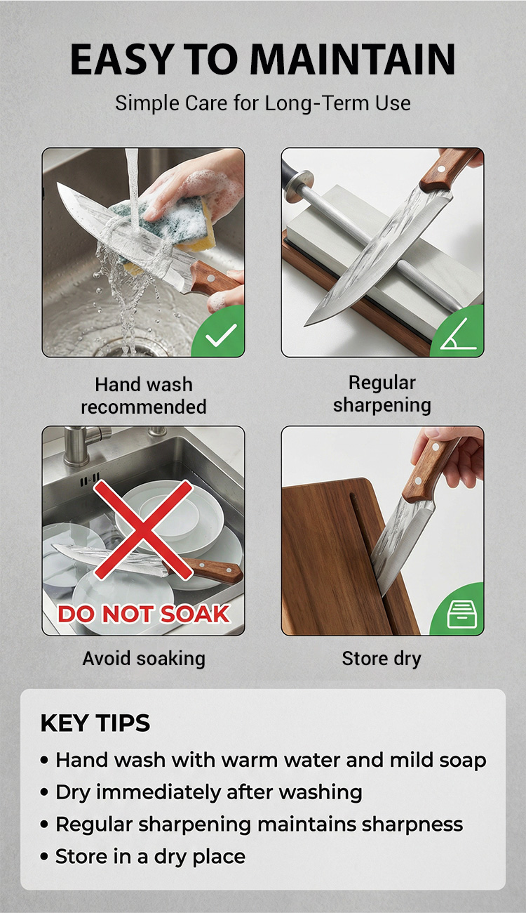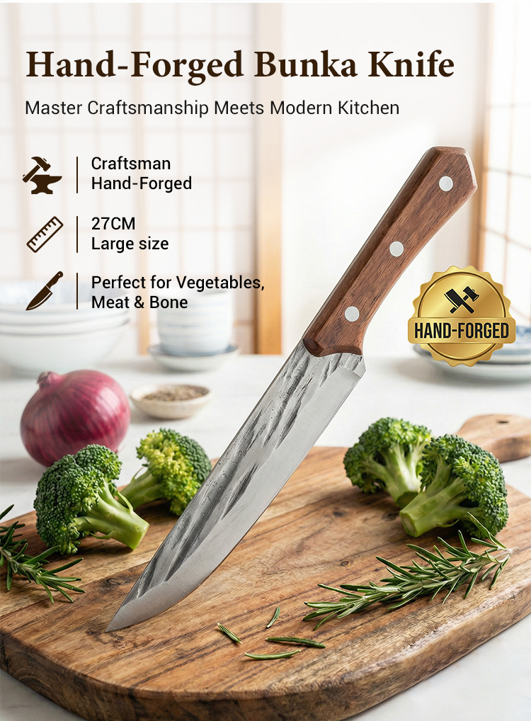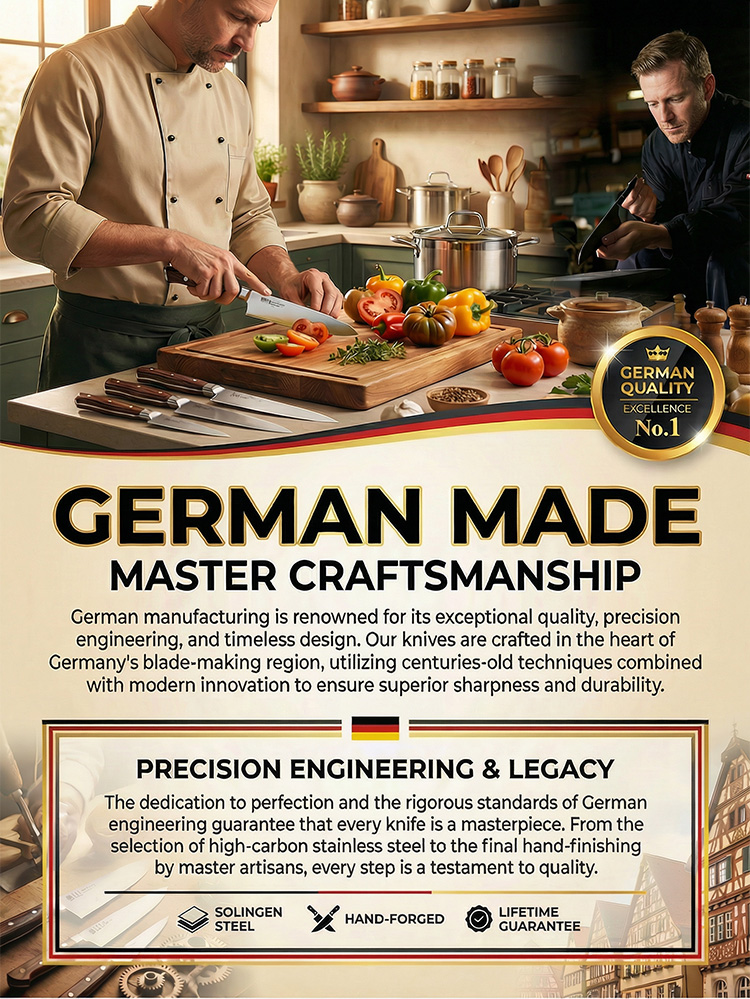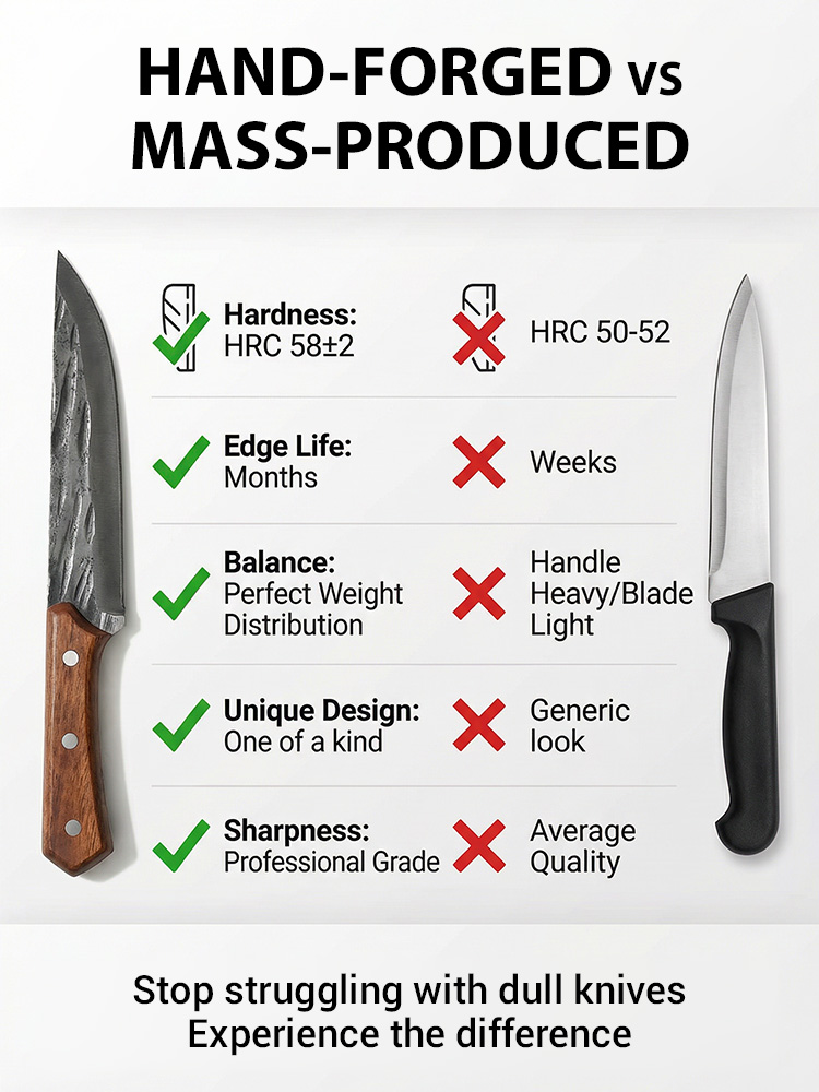 Hand-forged from German Krupp Steel, this masterpiece features a 15° razor edge that stays sharp for 10,000+ cuts. 🛠️ Master chefs love its perfectly balanced walnut handle, reducing wrist fatigue by 90% during heavy prep. Its industrial-grade coating means zero maintenance—no oiling, no sharpening, and no rust for half a century. 🎁 Spring Launch: 50% OFF Today! ⏳ German Quality Promise: If the blade chips or loses its edge, keep the knife & get a 10-X FULL REFUND! 🌟
