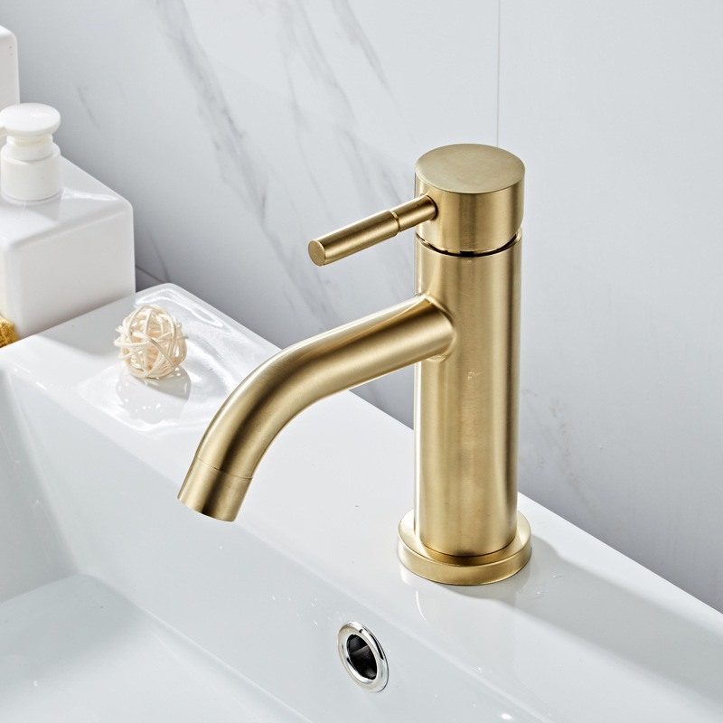 Faucet stainless steel brushed gold minimalist basin faucet hot