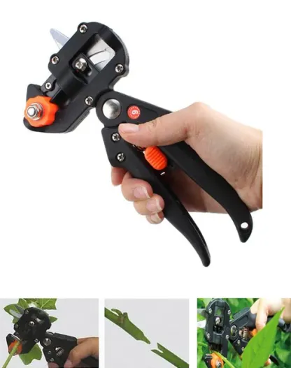 Step 1: Hold the grafting stock in the grafting tool and squeeze the handle to make the cut, repeat this step to cut stem from the donor plant. Take care to ensure that the groove is cut in the stock plant.